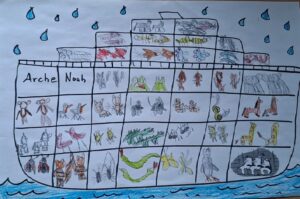 In Hamburg lernen wir zu allen großen Weltreligionen. Hier wurde zu der Geschichte der Arche Noah gemalt.